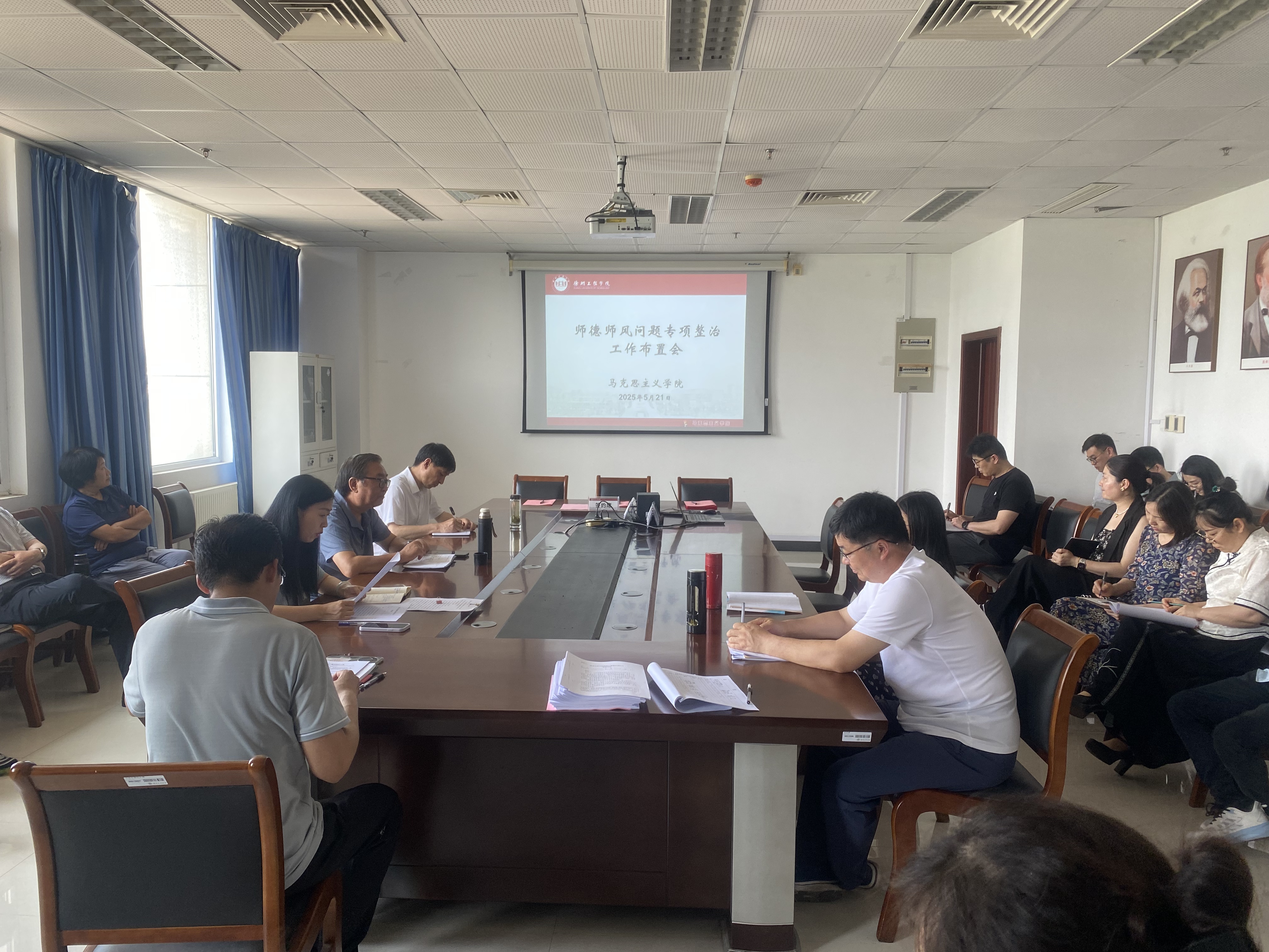 为加强师德师风建设,培养高素质教师队伍,伟德BETVLCTOR1946于5月21日在敬业楼412会议室召开了师德师风专项整治工作布置会。会议由学院党委书记周慧主持,全体教职工参加了此次会议。
