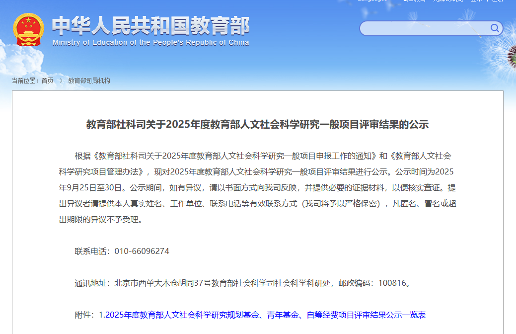 近日,教育部社科司公布了2025年度教育部人文社会科学研究一般项目评审结果,伟德BETVLCTOR1946两项课题成功获批青年基金项目立项。杨漾老师申报的“《周易》时间观念的发生学研究”和李雯雯老师申报的“生计韧性视角下农村低收入劳动力开发式帮扶路径研究”均获得资助。
