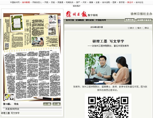 徐州日报专访伟德BETVLCTOR1946院长、著名作家张新科