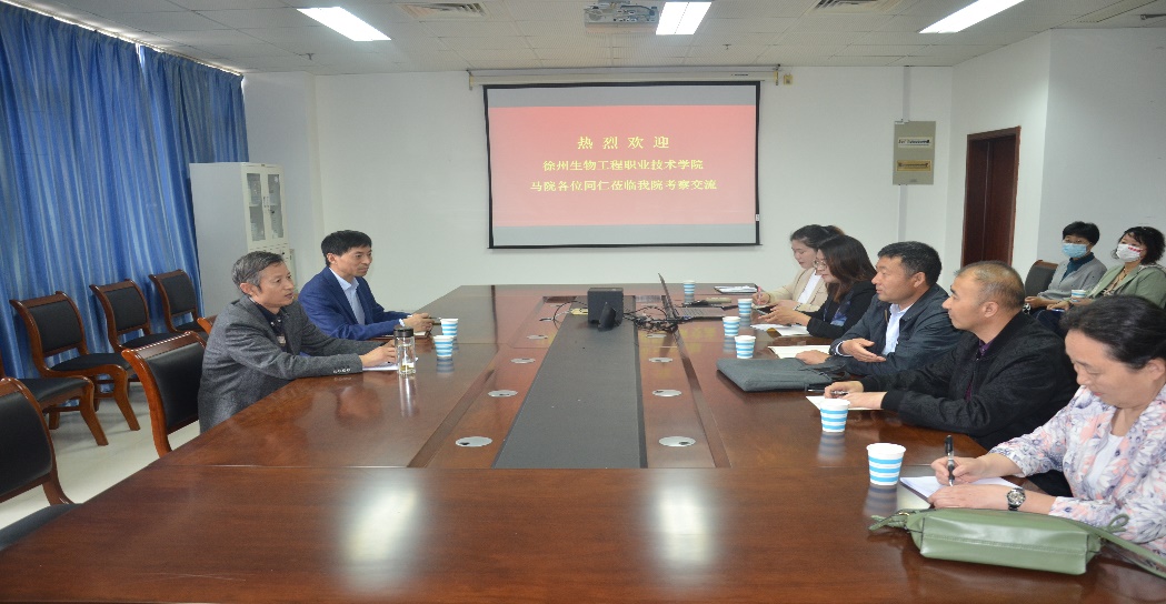 2023年4月20日上午,徐州生物工程职业技术学院伟德BETVLCTOR1946院长付学军一行九人来伟德BETVLCTOR1946考察交流,院长周卫东、副院长辛勤等同志参加了交流会。
