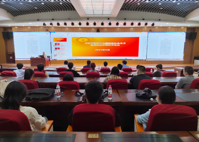 刘志明教授报告的题目是“习近平新时代中国特色社会主义思想的世界观和方法论”。报告会上,刘志明教授结合个人的长期研究,运用大量详实资料和鲜活案例,对党的二十大报告提出的“六个必须坚持”的丰富内涵进行了深入诠释,同时就如何把握好习近平新时代中国特色社会主义思想的世界观和方法论,坚持好、运用好贯穿其中的立场观点方法作了全面系统、深入透彻的讲解。报告主题鲜明、内容丰富、逻辑缜密、视野开阔,既有政治高度、理论深度,又有历史厚度、实践温度,引起了与会师生的强烈共鸣。