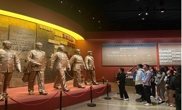 全体学生党员瞻仰了淮海战役烈士纪念塔,缅怀先烈的英勇事迹,追忆老一辈革命家的丰功伟绩。在淮海战役纪念馆中,同学们跟随讲解员的步伐了解了淮海战役的历史背景、历史意义和英勇事迹。这次活动不仅有助于同学们了解红色党史,更有助于同学们体会英烈精神,强化爱国主义情怀,坚定革命信仰。