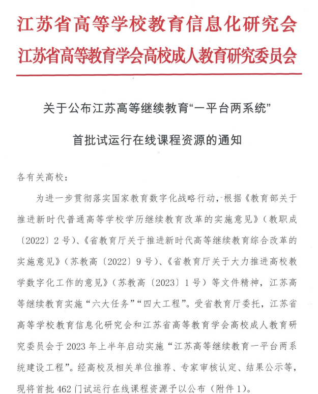 近日,江苏省高等学校教育信息化研究会、江苏省高等教育学会高校成人教育研究委员会公布了入选江苏高等继续教育“一平台两系统建设过程”首批试运行在线课程资源,伟德BETVLCTOR1946原理课教研室申报的《马克思主义基本原理》课程资源位列其中,学院课程建设取得显著成效。