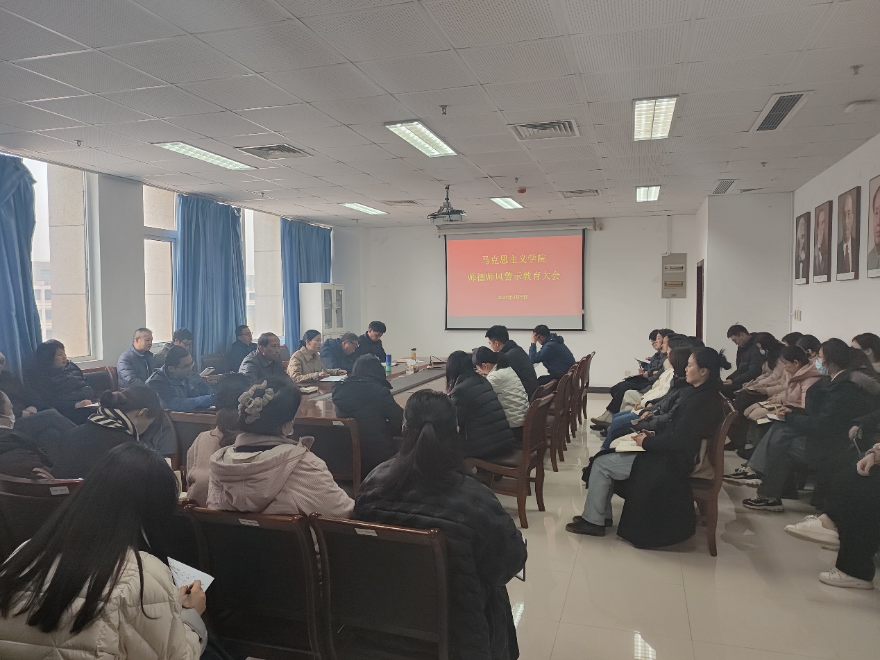 会上,周书记带领全体老师学习《新时代高校教师职业行为十项准则》《教育部关于高校教师师德失范行为处理的指导意见》等相关文件,并对多起违反教师职业行为的典型案例进行深入剖析。周书记要求全体教师深刻汲取案例教训,认真进行自我审视,以案为鉴,做到警钟长鸣,弘扬正气,坚定教师立德树人的责任感和使命感,筑牢师德底线,坚守教育初心。